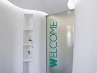 Dans la conception du bureau, des autocollants de magasin ou de café peuvent être une chose nécessaire. Dans les institutions publiques, par exemple, des autocollants sur les portes portant l’inscription «Attention, glissant» éviteront aux visiteurs de tomber. La feuille de porte peut montrer des inscriptions avec des stocks, les coordonnées de l'institution. Dans ce cas, ce sont des publicités économiques et pratiques pour les locaux.