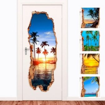 Ces thèmes peuvent être appliqués dans différentes pièces, mais ils doivent être cohérents avec son style. Les autocollants peuvent être une continuation du décor ou de son ajout harmonieux. Ainsi, le thème du paysage sur la porte de la cuisine ou une cascade sur la porte de la salle de bain ne plaira pas seulement à l'œil, mais rehaussera également l'ambiance.
