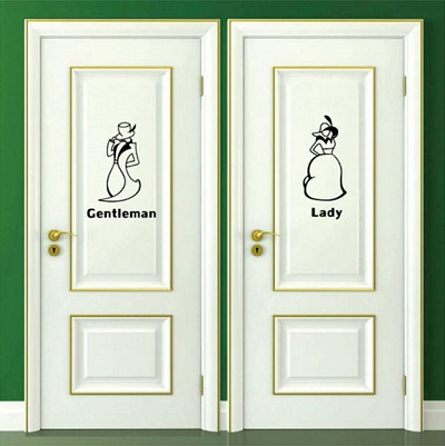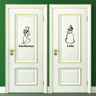 Des autocollants avec des inscriptions informatives ou amusantes pour les toilettes et la salle de bains permettront aux clients de ne pas confondre ces portes et d’apporter une originalité à l’intérieur de l’appartement.