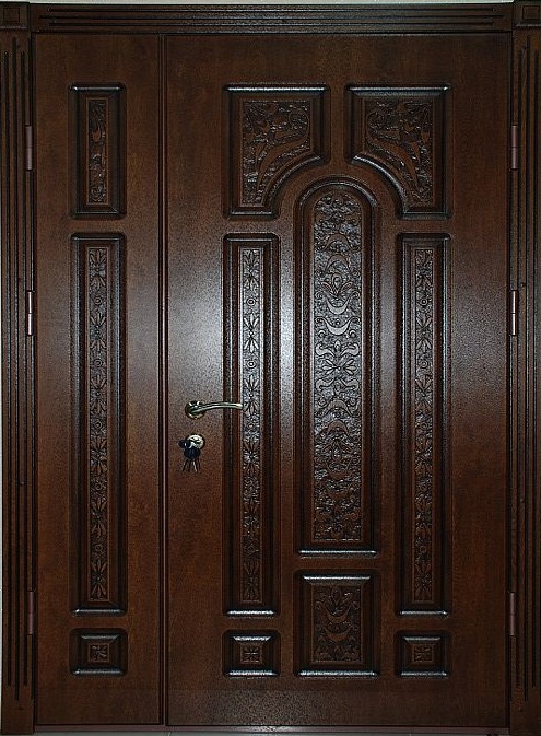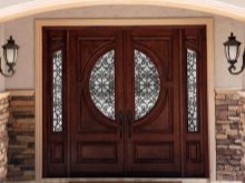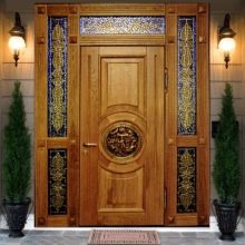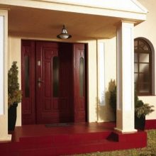 En règle générale, le bois est utilisé pour cela. Ils ont l'air très élégant et cher. De plus, le plus luxueux est une construction à double battant installée à l'entrée d'une grande maison privée. Un tel modèle à deux ailes est plutôt massif et luxueux, soulignant ainsi le statut social élevé des propriétaires.