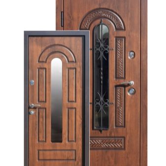 Ainsi, les portes avec miroir, avec verre, avec forgeage sont très populaires. Ils ont l’air peu commun, bien qu’à l’extérieur, ils ressemblent beaucoup aux portes d’entrée les plus courantes.