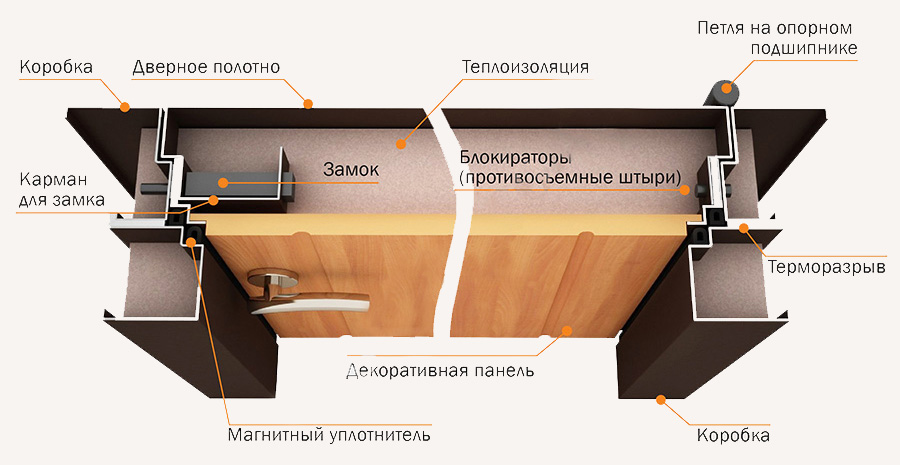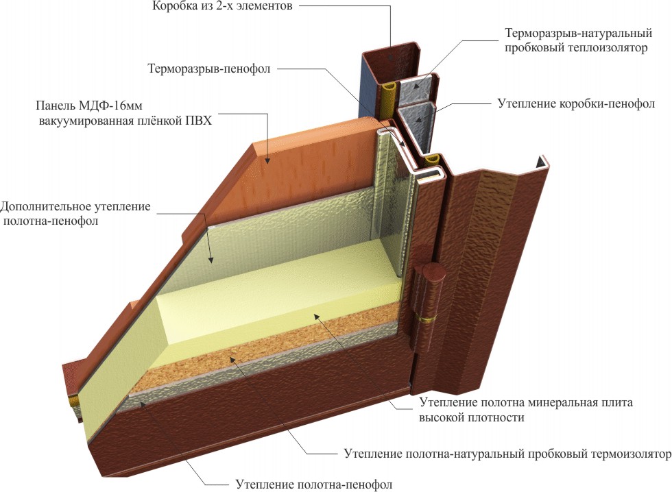En soi, la porte avec une coupure de chaleur peut être en métal. Mais pour sa création, utilisez des types spéciaux de matériaux isolants. Ils sont nécessaires pour réchauffer la structure et améliorer sa résistance aux influences extérieures. Pour cet usage: