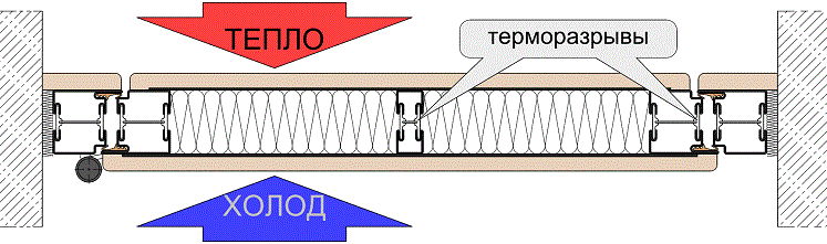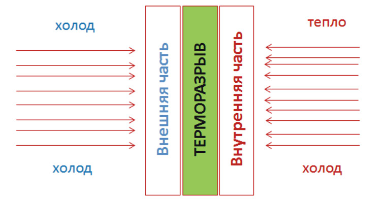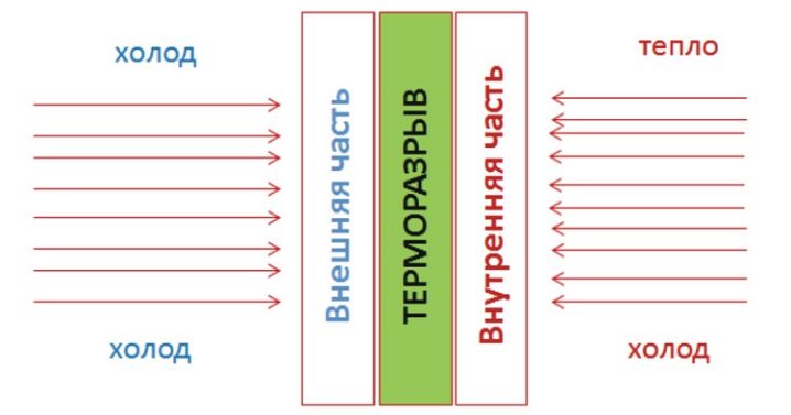 La coupure thermique ralentit la perte de chaleur qui reste à l'intérieur de la maison et ne laisse pas du tout passer l'air froid. Cette conception fonctionne sur la base de matériaux isolants.