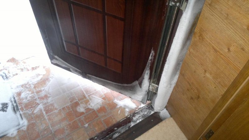 En raison de la très basse température derrière la porte, les gouttelettes d’eau formées à partir de vapeur gèlent complètement et se forment sous forme de givre. Ainsi, la porte n'a plus ses propriétés isolantes. Cette conception devient complètement peu fiable.