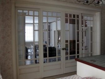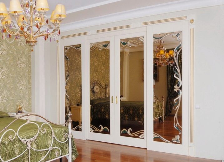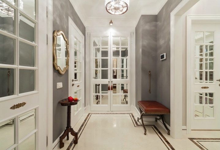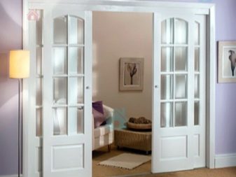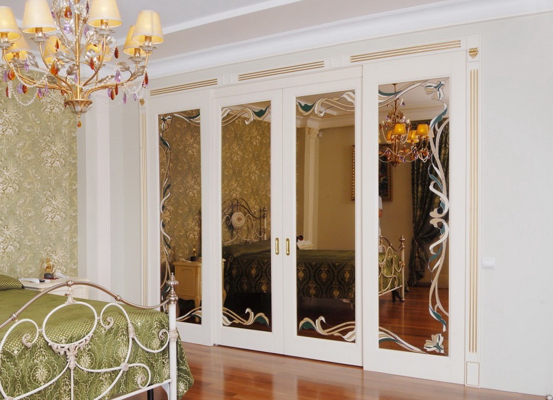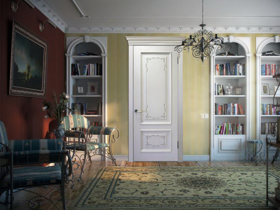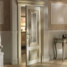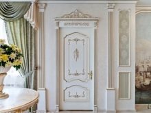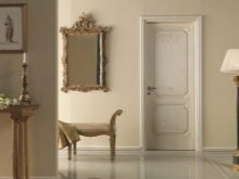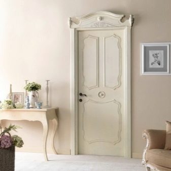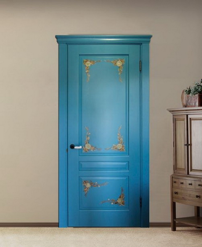 Les vantaux peuvent être peints sur un ton ou combiner plusieurs nuances. Une excellente option serait les produits de couleurs blanches. Sur fond blanc, les fissures et les éraflures sont clairement visibles. La couleur traditionnelle de la feuille de porte ainsi que les tonalités de lit dans la couleur des murs et des sols, les meubles, sont fondamentales pour le style.