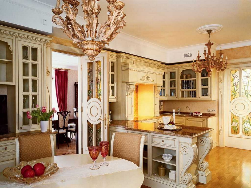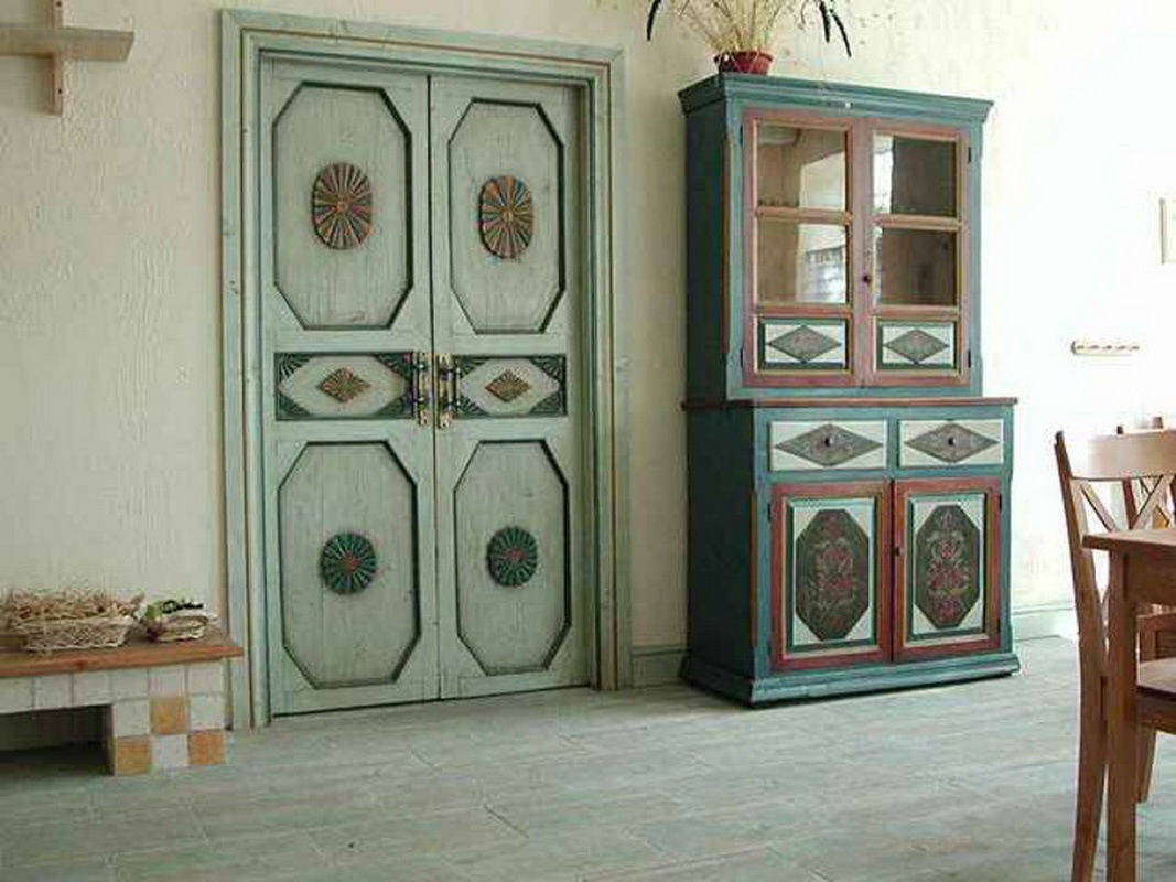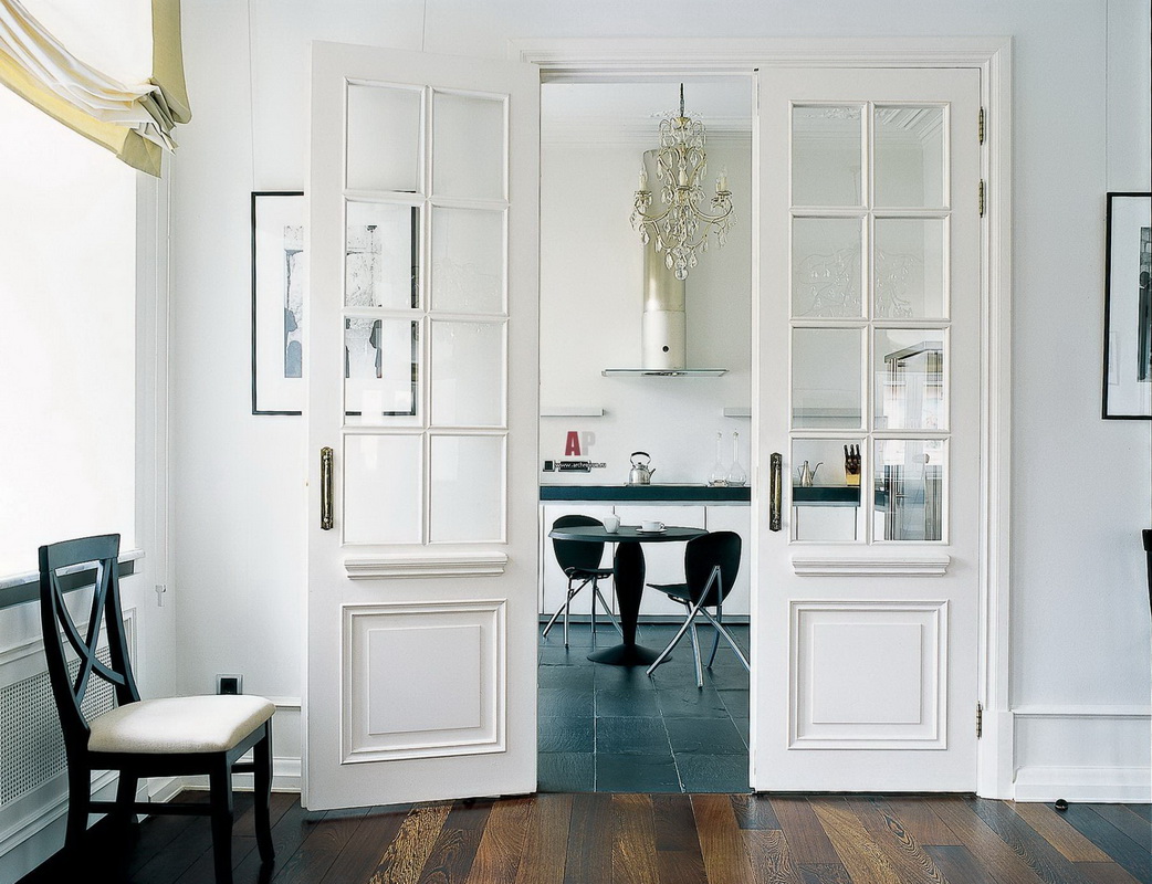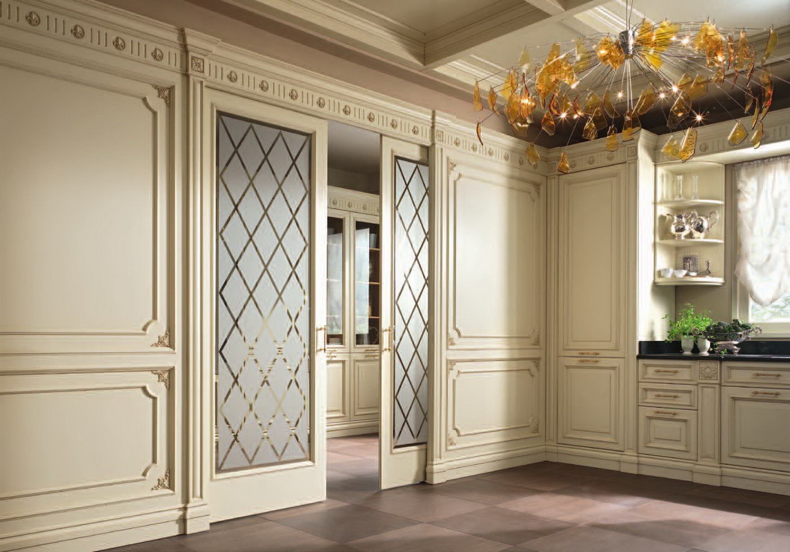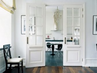 Les portes blanches seront une excellente option pour la cuisine et la salle à manger. La décoration actuelle sera constituée de bouquets verts, de bouquets de fleurs séchées de violettes et d’herbes parfumées. Il est possible de décorer à l'aide de la peinture, principalement avec des ornements floraux.