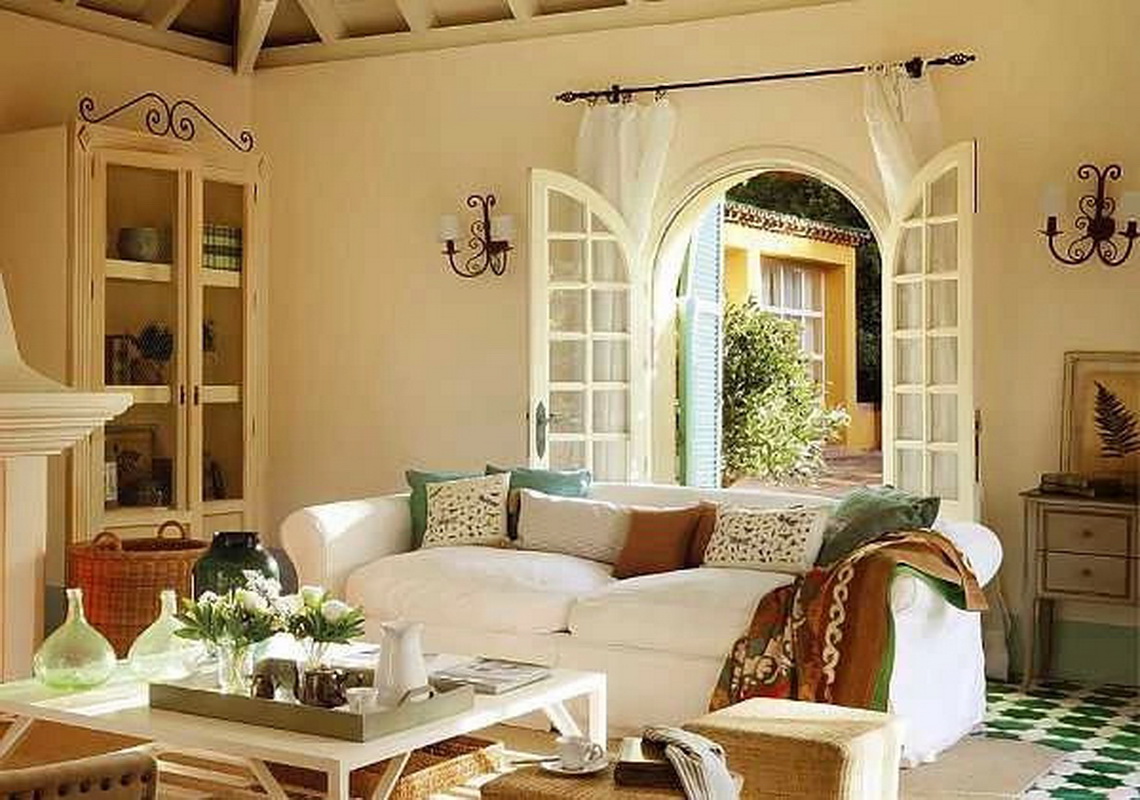 Des nuances de couleur lilas, des meubles vieillis et délavés, un décor simple composé d'un ornement peint symétrique, une lumière tamisée et légère d'un abat-jour ancien dans le décor intérieur recréeront l'esprit de la campagne française. La Provence ensoleillée et bienveillante est le clou du Sud de la France, où le style du même nom a pris son origine.