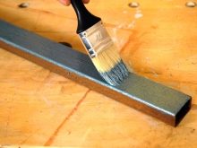 Si vous envisagez de peindre avec un pinceau, il est recommandé de choisir un outil avec une base large et des soies naturelles. Il est permis d'utiliser des pistolets de pulvérisation en métal.
