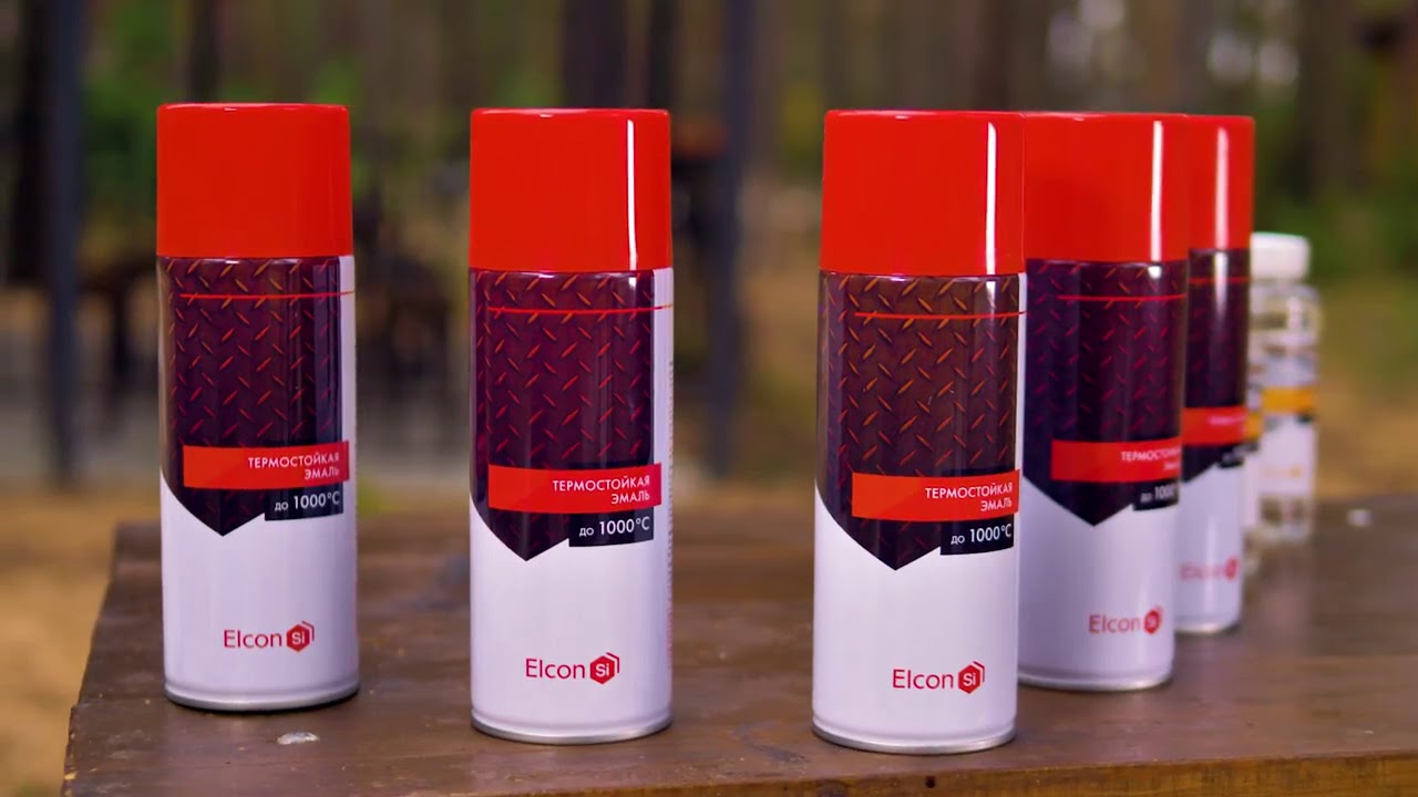 Les émaux Elcon résistants à la chaleur ont 11 modifications différentes, de composition et d’utilisation différentes. Le produit le plus populaire est la peinture Elcon avec une résistance à la chaleur de -60 à +1000 degrés. Le matériau est produit sous forme de bombes aérosol et de fer. La composition du mélange de coloration ne comprend pas de substances nocives, ce qui permet l'utilisation d'émail pour peindre les structures à l'intérieur des locaux.