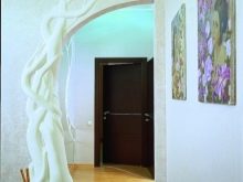The frame of an interroom door opening can be the most various. Most often, the design of square arch aisles is done with decorative plaster. This method of decoration will allow you to create the most diverse and unusual forms. And you can make an interesting texture and relief.