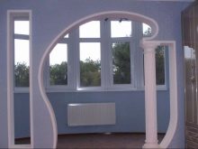 Balconies with an arch leading onto the living room can be decorated with large interesting columns. This is a pompous and luxurious option that is perfect for decorating a room in a classic style. A very inexpensive finish option is painting. In this case, the arch must first be plastered, and then covered with several layers of paint. And It is better if the color of the paint is combined with the color scheme of the rooms connected by the passage.