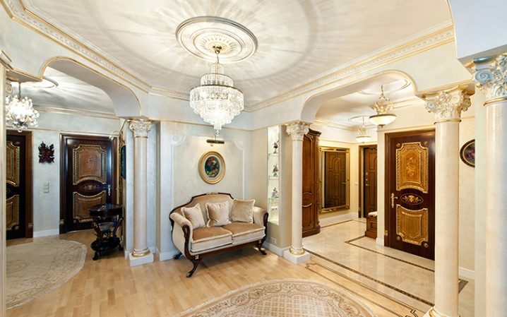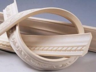 - Polyurethane molding on such designs looks very luxurious. It allows you to create an analogue of the classic design with columns. Polyurethane moldings are quite strong and dense, and therefore can serve for a very long time.