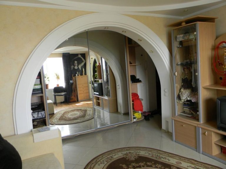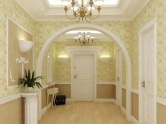 The arch can be glued with bright contrasting wallpapers, thereby highlighting it in the interior. You can also use wallpaper with a pattern for decoration, the color of which will repeat the color of wall coverings of adjacent rooms. For the hallway, you can use the facing mosaic or mirrors.Such a construction at the entrance will attract the attention of guests and add to the narrow corridors of additional space.