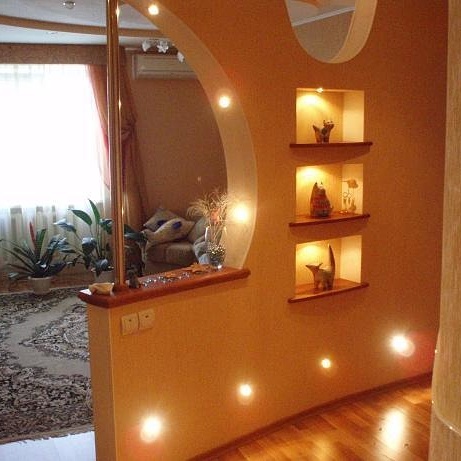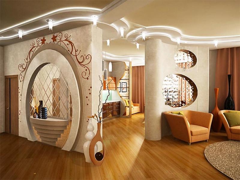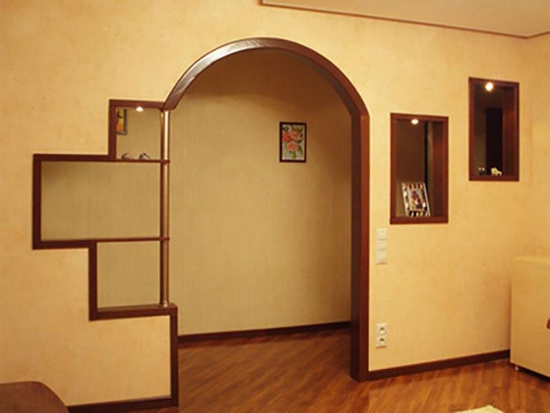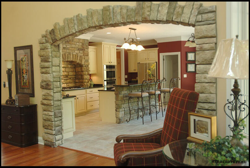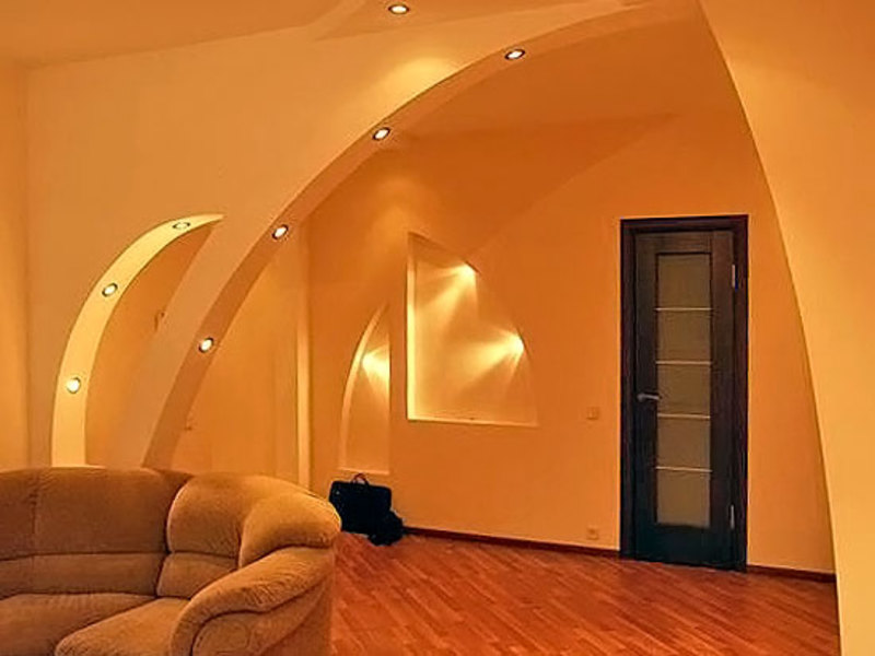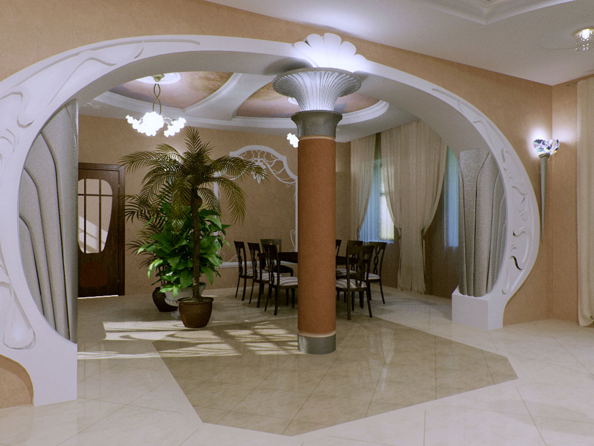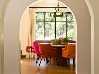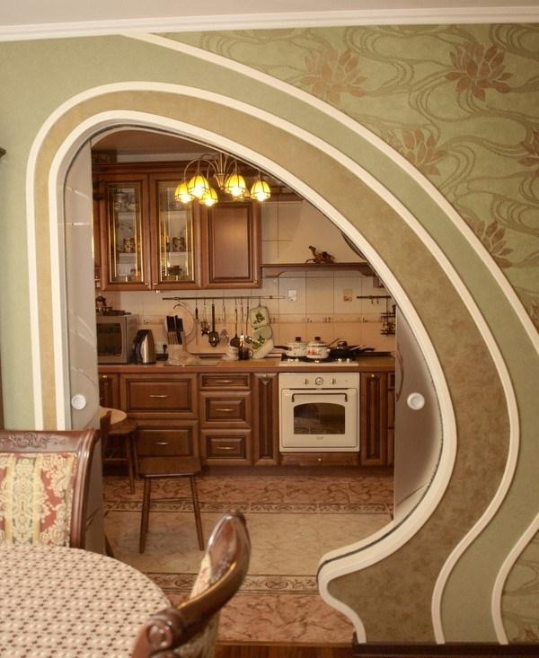 The arches are only suitable for finishing the walk-through rooms in the house, as more secluded, intimate rooms are kept closed. The disadvantage of the arches is that they let the smells through. Installing an arched structure in the kitchen, while cooking, the upholstered furniture in other rooms soaks up with smells.