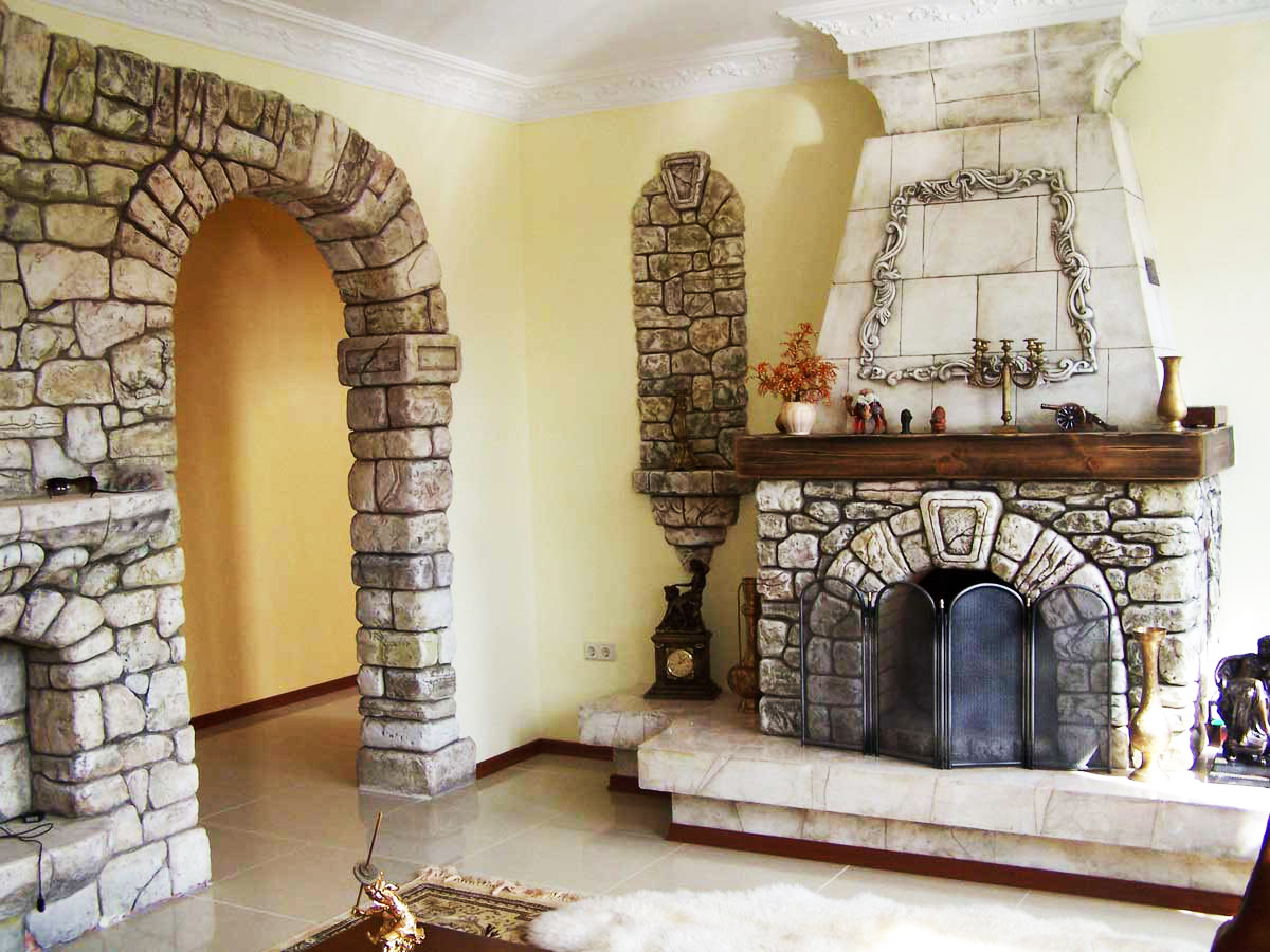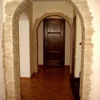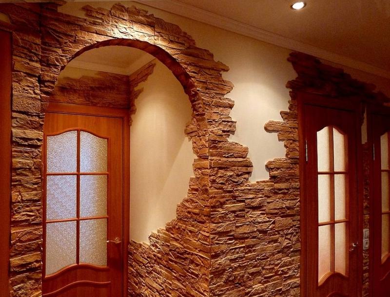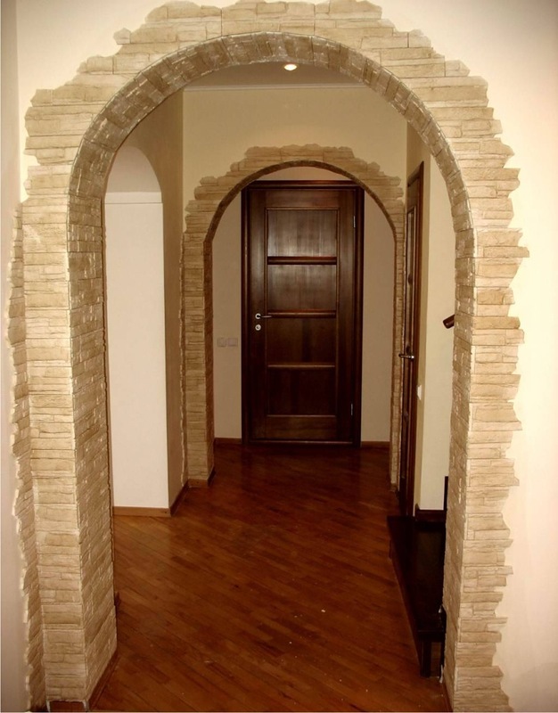 - A rock. This finishing material is used only if the arched design is reliable.If you have an empty arch, in this case it is better to give preference to a lighter artificial counterpart. To create it, they use gypsum, which is very light, but not very durable.