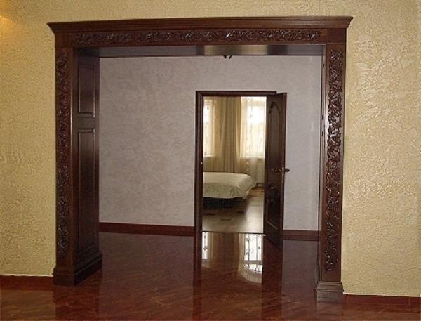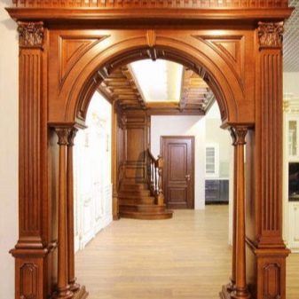- Tree. Wooden trim is usually done in rooms decorated in a classic style. This arch is distinguished by the simplicity of the decor. Very often such models are decorated with openwork carvings or carved on them images of animals, birds or geometric patterns.