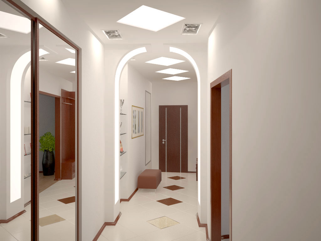 Some use when finishing such a design move as an arched corridor. In this case, several decorative arches are made in the long corridor, each of which complements the other. So you can spend a competent zoning of the corridor and make it more elegant.
