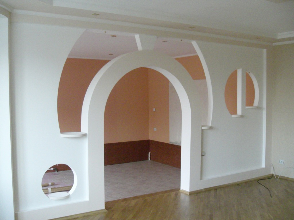 - Drywall The drywall arches are distinguished by their elegance and interesting design. In this way, you can show imagination and create your own products of the most unusual form with your own hands. Drywall is a very lightweight material, you can work with it yourself.