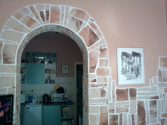 To create decorative elements on the arches they use stucco, paint, natural and artificial stone, decorative panels, marble, tiles. Very often in this case, resort to a combination of several materials. So, the stone can be combined with wallpaper and paint. And the decor in this case can be made by placing the stones in a different order. They can be folded into patterns, where each pebble complements another one or, on the contrary, one can make a more chaotic arrangement of these
