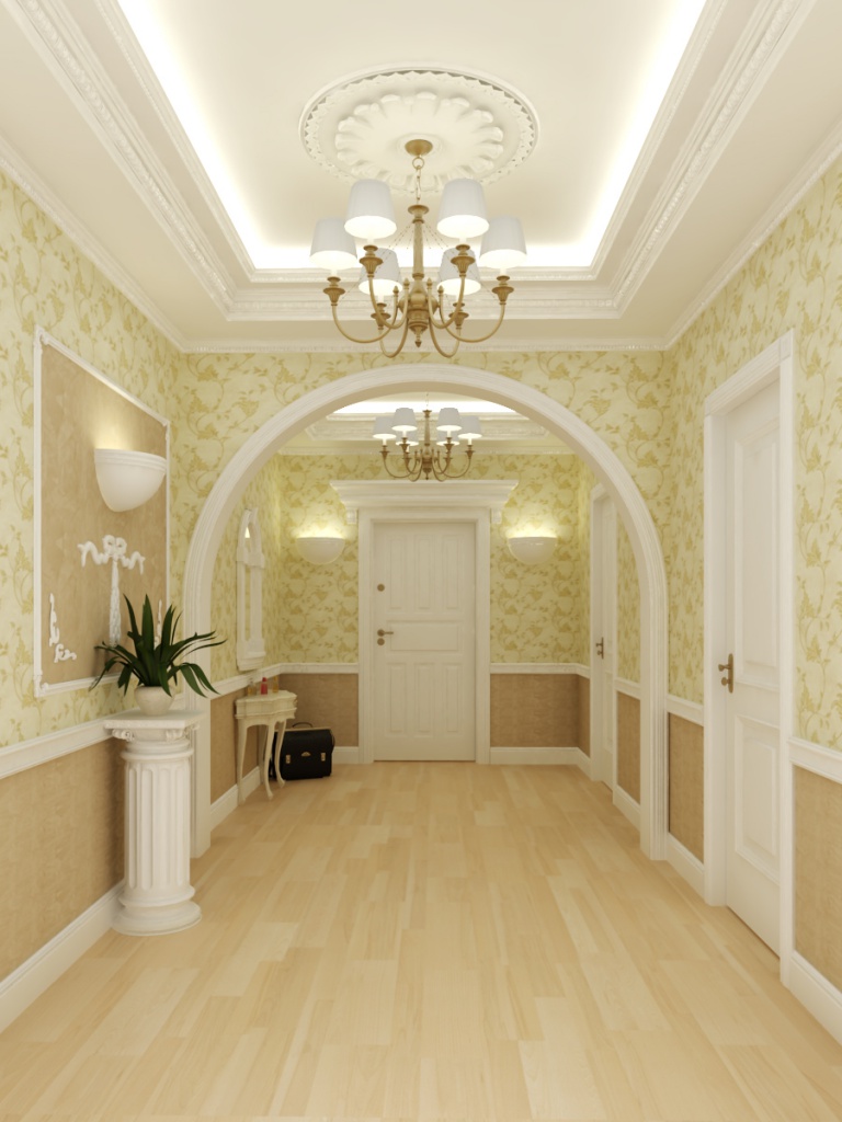 If you install the arch in a room made in classic style, you need to choose a model with perfect shapes. So, its radius should be half the width of the doorway. Wood and polyurethane molding are also perfect for finishing.Also for the decor in this case is used and polished marble.