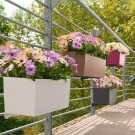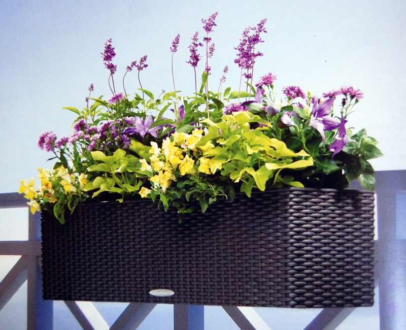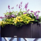 - Balcony boxes with a holder are very ergonomic in use, as they can be fixed not only on the wall, but also under the balcony “pocket”, which will save space considerably. To make reliable hanging boxes you need a bracket and the “right” arms.
