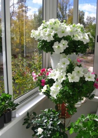 Avid gardeners recommend planting vines on the sunny side, such as ipomoea. The main thing is to secure the boxes correctly so that the flowers cover the necessary territory. But the gardeners give the first place to the beautiful petunia, whose color range is so huge that everyone will find a flower for themselves. It is rather simple to care for her, and she pleases with lush flowering for a very long time.