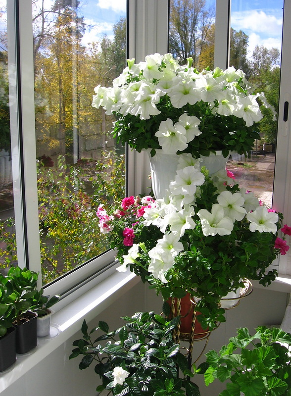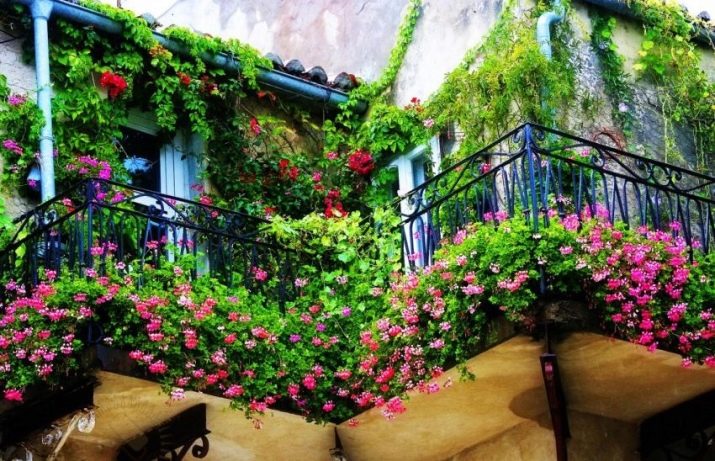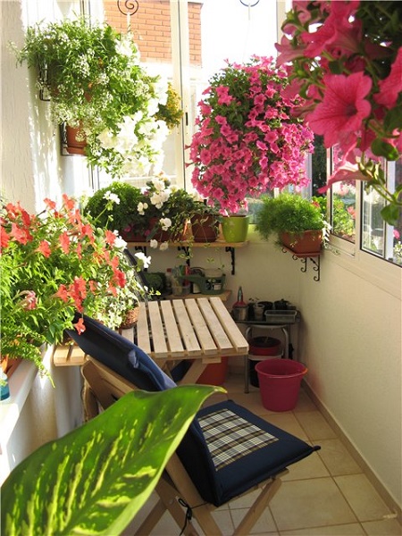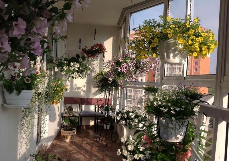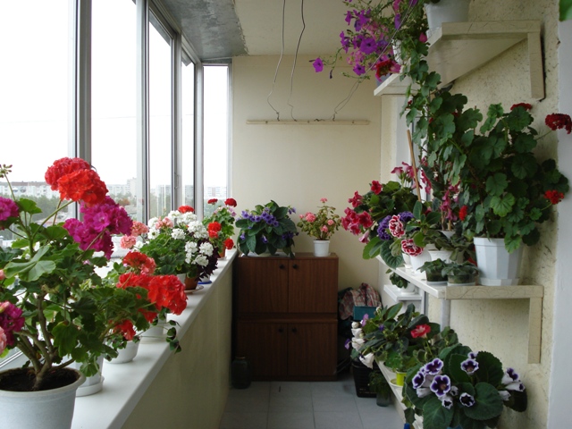 There are many interesting options for placing flowers on the covered balcony. About each of them can be written separately.