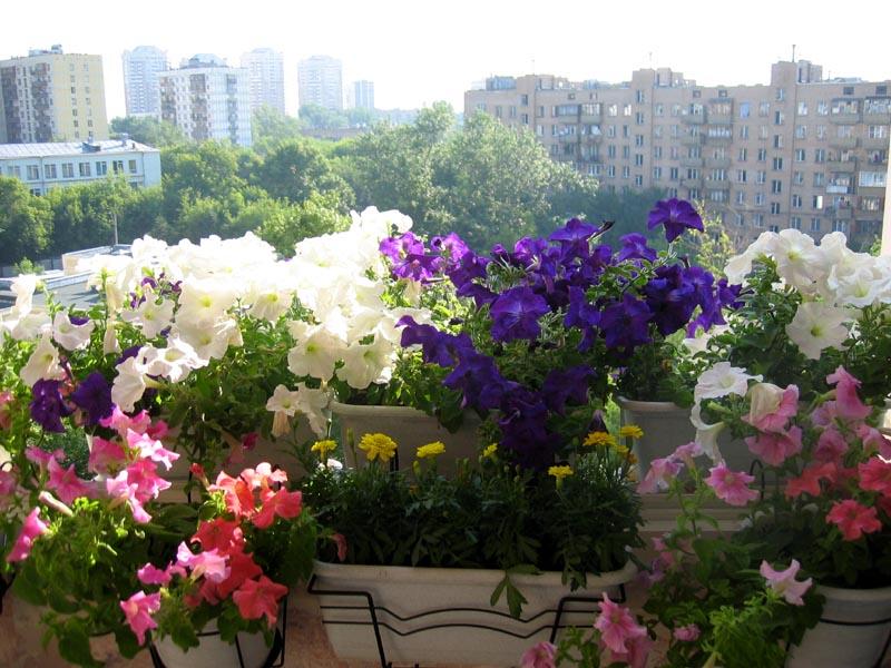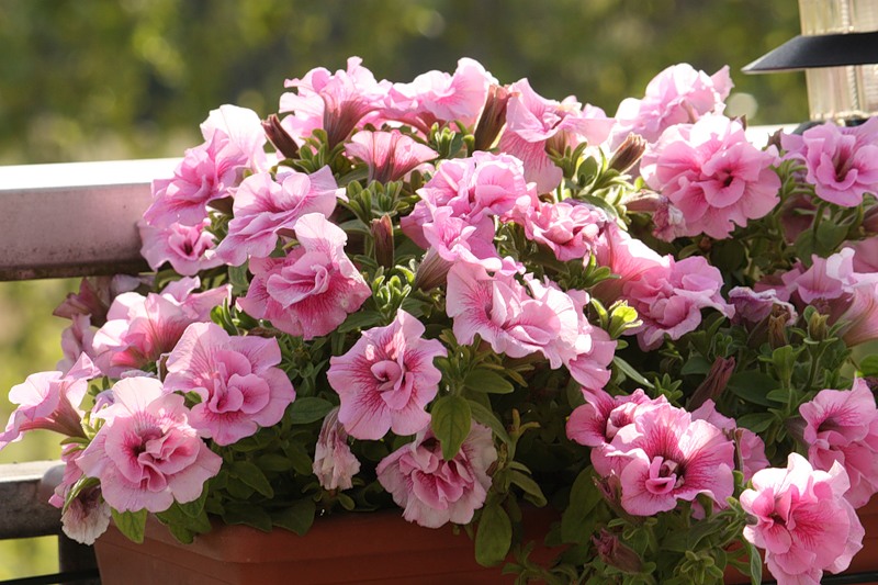 There are many plants that love the sun and heat. Therefore, for an open balcony on the sunny side, the choice is huge. This includes fast-growing annual flowers, for which the east side in the summer is an ideal place.
