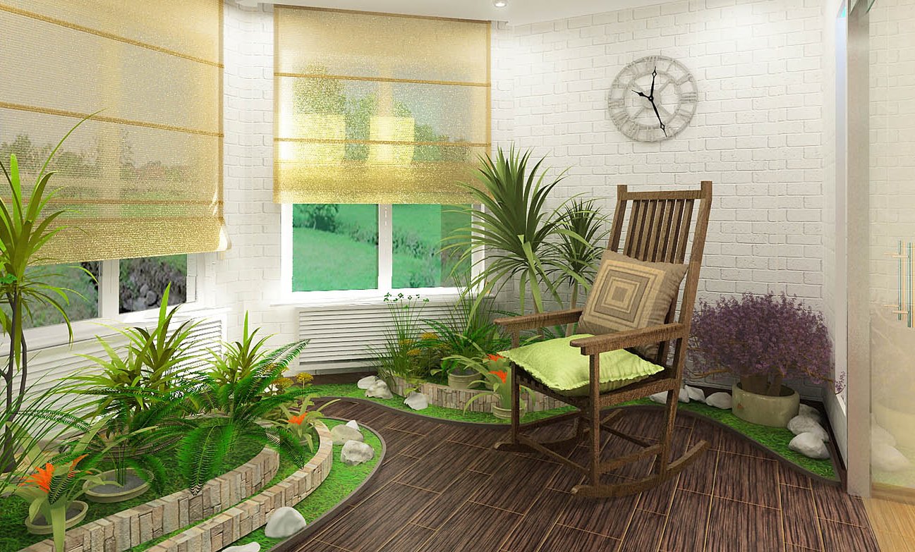 A loggia or a warmed terrace is ideal for a winter garden. If you plan to grow enough heat-loving plants, then the space should be provided with additional lighting and heating devices. In this case, the choice of the type of cultivated plants will be huge.