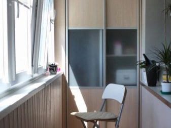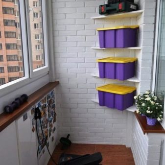 For those who have a balcony of this type (in the form of a boot), you can make a lot of interesting options.For example, you can successfully integrate the cabinet in the corner part. Outside the loggia can be strengthened with plastic panels. If space allows, then you can place a refrigerator on the balcony. Here you can conveniently store a variety of products.