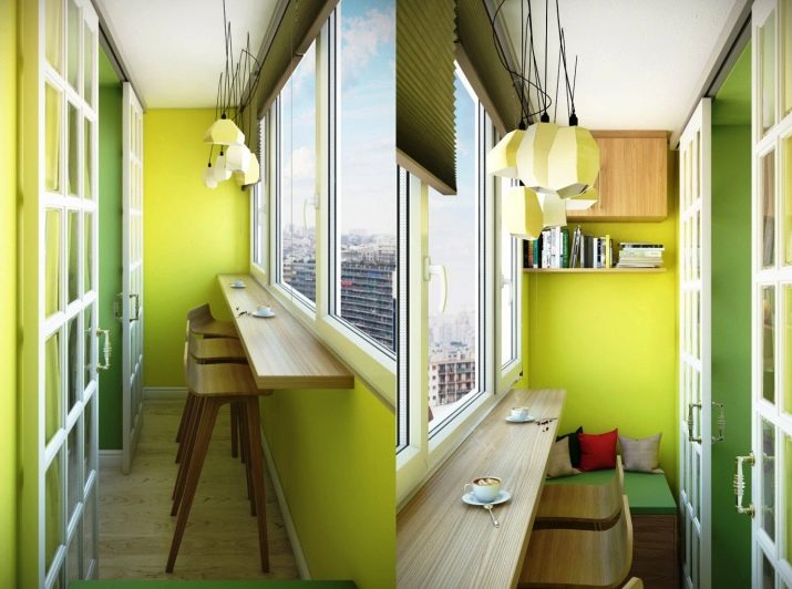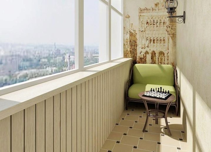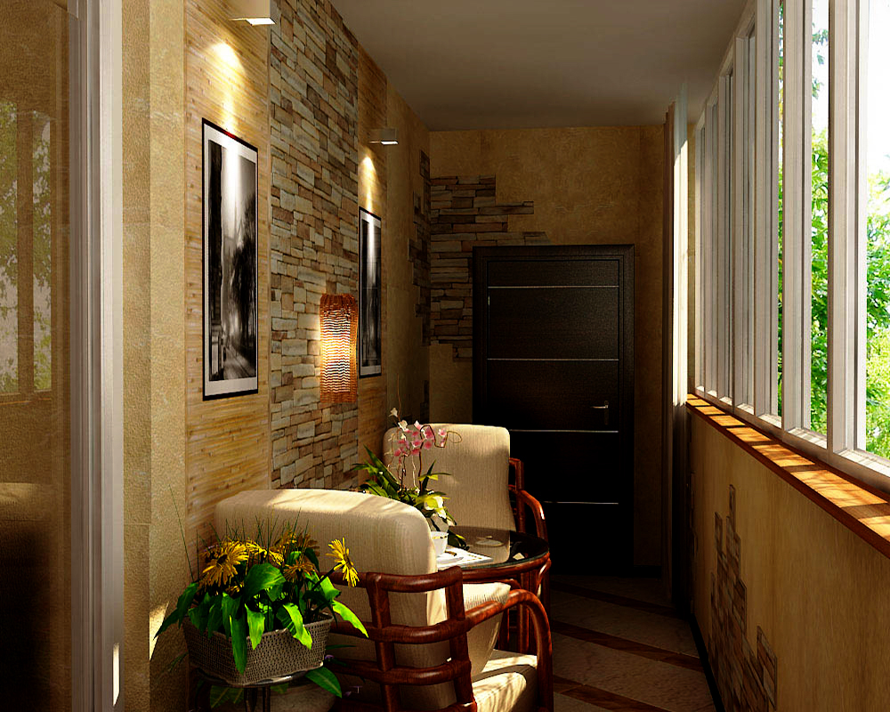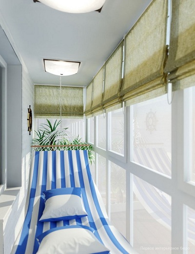 Even if you have a small space, then you can install, for example, a bed, decorative candles or lamps, favorite flowers, a small table, blinds, spherical lamps on a long chain. For the summer version of the perfect bright pastel colors. It will have a calming effect on your nervous system. For example, the original will become a room where lime and pink color predominate. In accordance with the type of decoration should choose and wallpaper that will be pasted on the walls of the loggia.