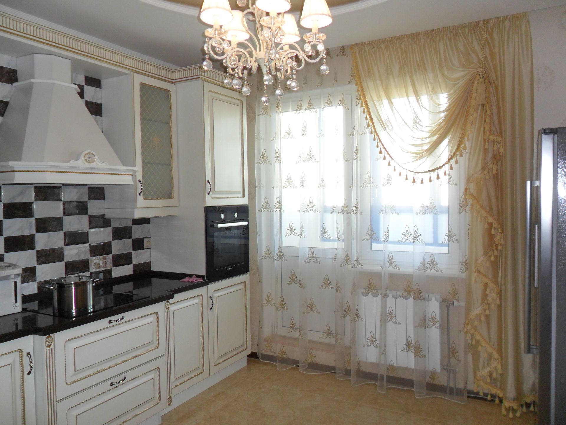 The design of the kitchen window with a balcony door can be done with the help of beautiful curtains. Pick up a product of your favorite color or in tune to certain accessories. It will be a good option to arrange flowers there, they will give the room comfort and warmth. You can enjoy your favorite fragrances, feel comfortable and at ease.