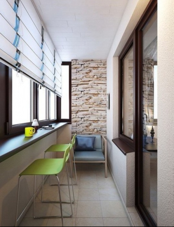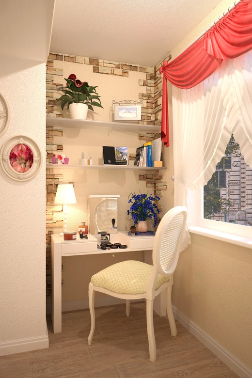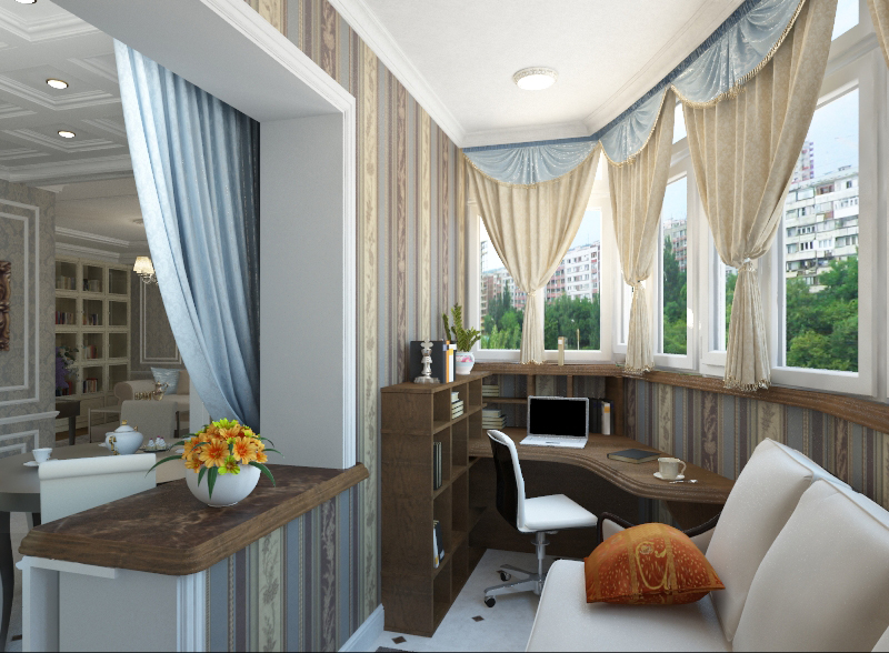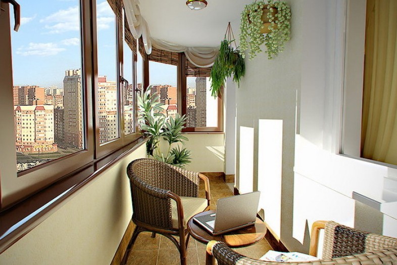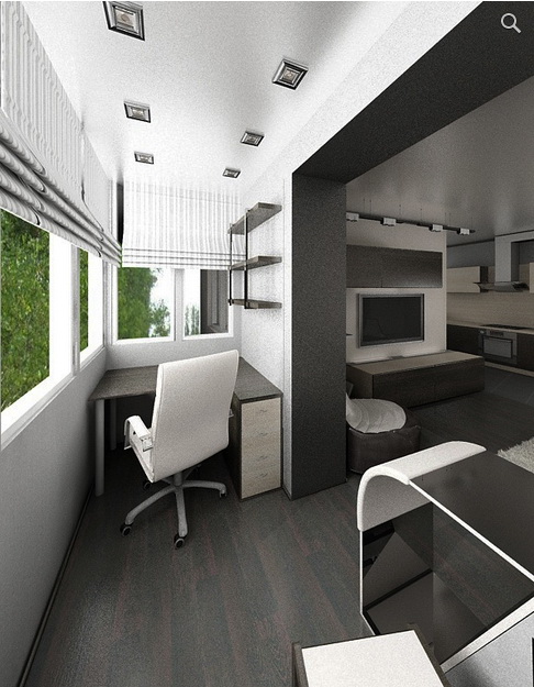 - Ability to equip the loggia at its discretion. You can create from this room not only a warehouse for unclaimed things, but also, for example, a zone for rest and relaxation or a study where your relatives will not disturb you, and you can work calmly and fruitfully. You can think of a wide variety of options yourself or invite an experienced specialist.Of course, the services of a qualified designer will cost much more, but you can save your time, nerves and in some cases money.