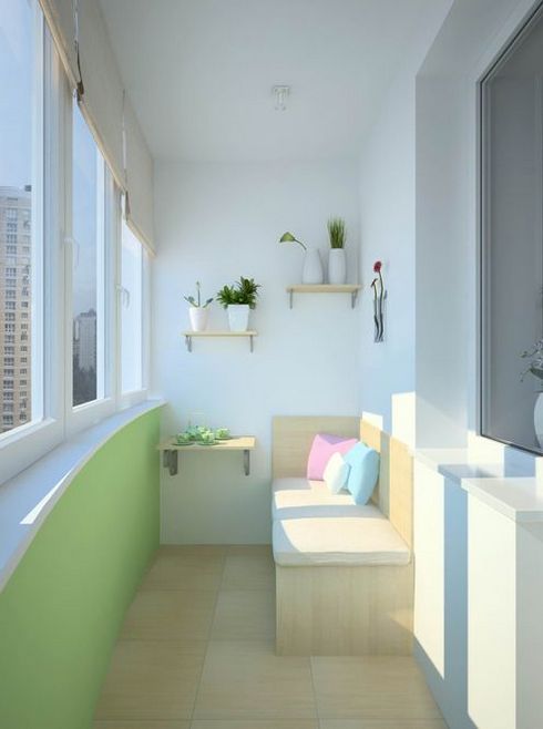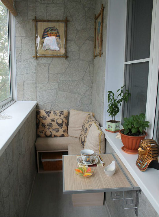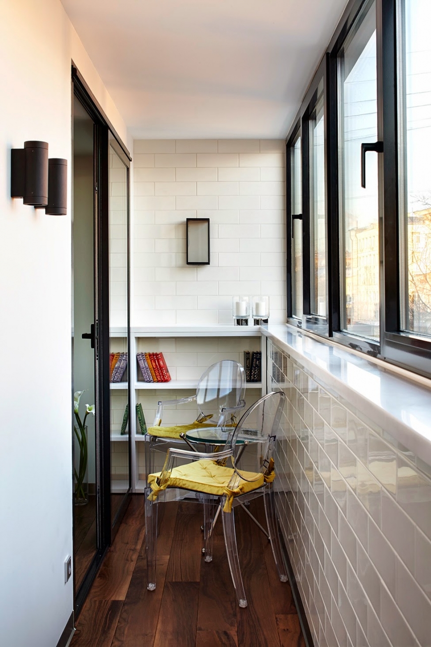 You can increase the space by integrating your loggia and other premises, such as a hall or kitchen. Put on the balcony will be a small sofa, refrigerator, locker. Arrange the space in accordance with the style concept of the apartment.A good idea would be to lay out a multi-colored mosaic on the floor of the loggia. This will visually expand the space, as well as add more light and positive.
