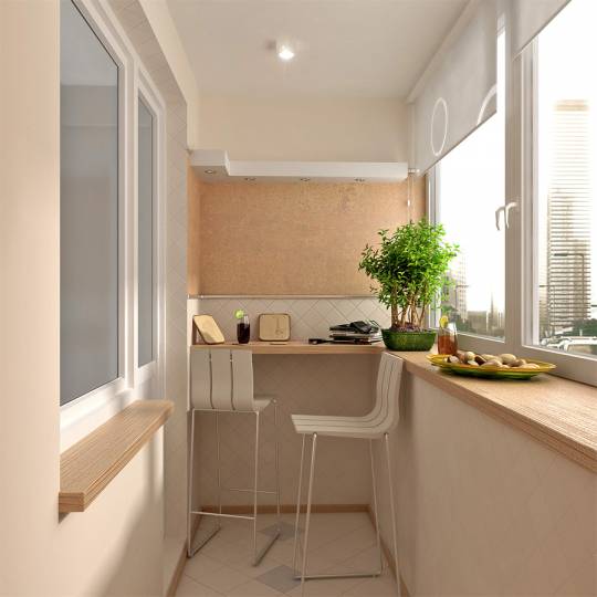 If you have a small space, only two square meters, do not despair. You can create a stylish version using creative ideas.For example, from such a balcony you can make a comfortable study. You can put a small table in proportion to pick up the rest of the furniture and accessories. Remember that light colors will help to visually expand the room.