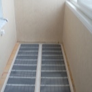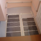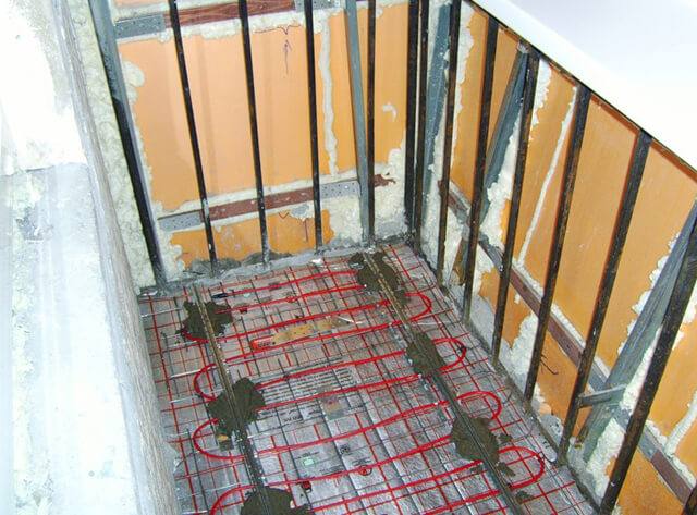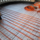 - Top stacked mats or conductive cord. The thermostat is installed on the wall in easy access. The screed is poured.