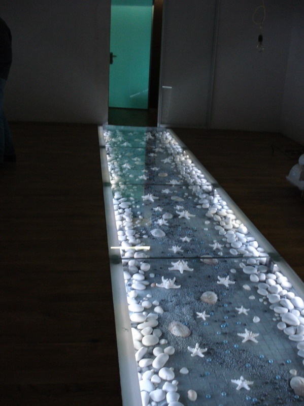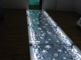 Mosaics, aquariums, and just drawings are built into such floors, or you can leave a transparent layer. Despite the beauty and durability, glass floors are still not designed as a coating for heating structures. Although it is quite appropriate as an independent element, since usually the second layer of the glass unit plays the role of insulation.