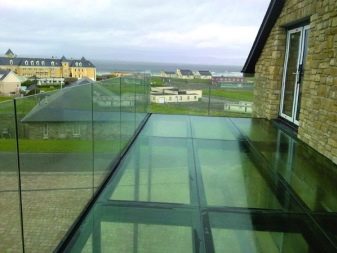 Gaining popularity recently all-glass floor.The coating is made of impact-resistant glass. The design consists of 3 layers with a thickness of about 8 mm each, which are connected either by an adhesive base, or by means of thermal exposure.
