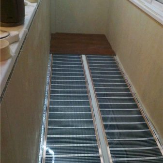 The basic rule that should be taken into account is not to install household appliances on the heated surface, as this may lead to its overheating and further breakdown of it. Therefore, if the balcony is combined with a kitchen, then it is necessary to lay the heating elements selectively.