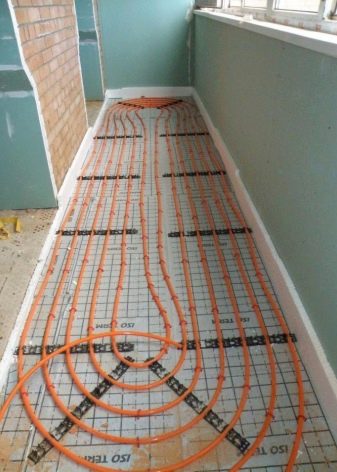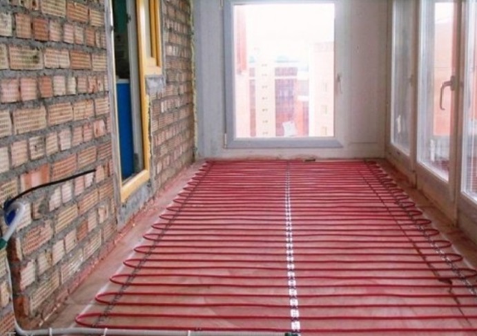 For an apartment, it is more convenient to install an electric underfloor heating system due to the convenience and sufficient ease of construction. Moreover, the water type directly depends on the heating season. But any kind of coverage is acceptable, since for the most part all loggias are closed and the coating will not be exposed to adverse weather effects.