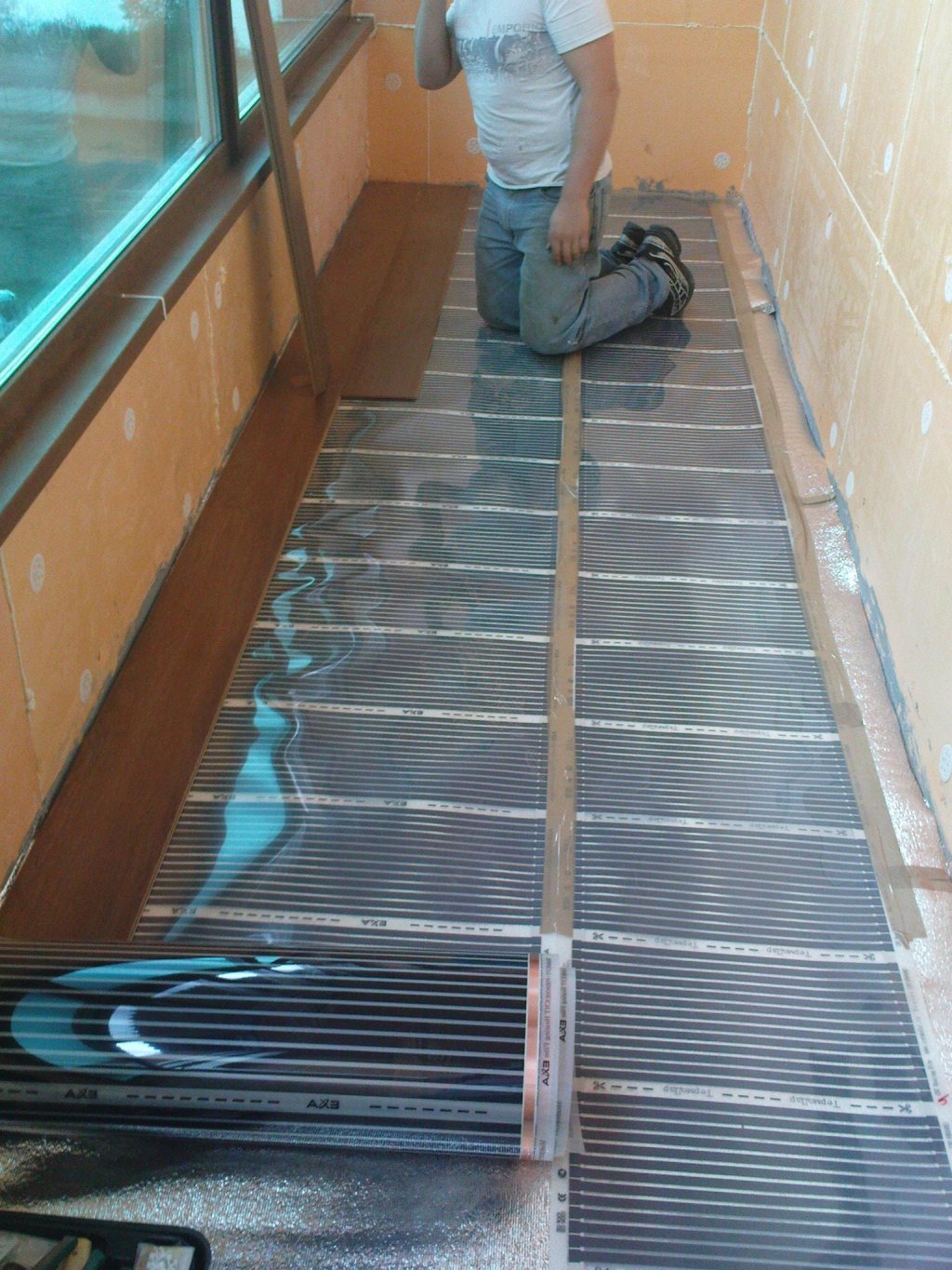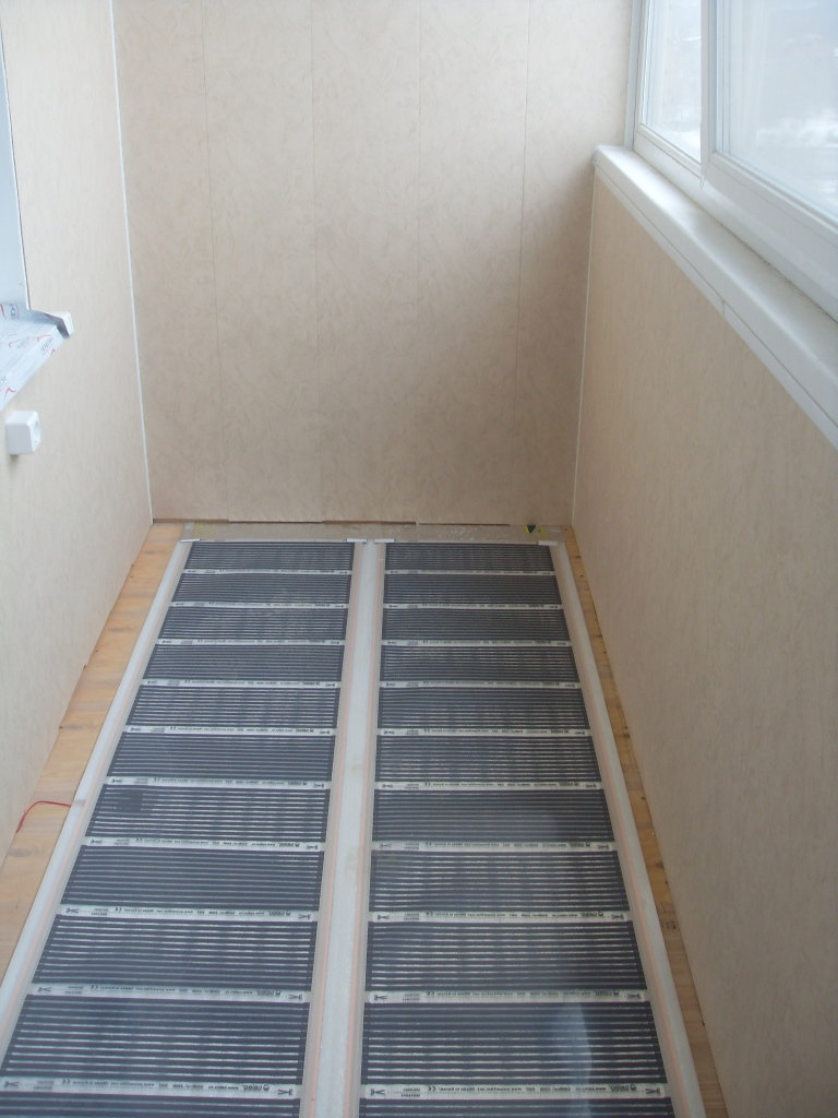 Before you install a warm floor, you must first produce glazed loggia. Next, insulate the walls and ceiling. And only after that you can proceed to the warming.