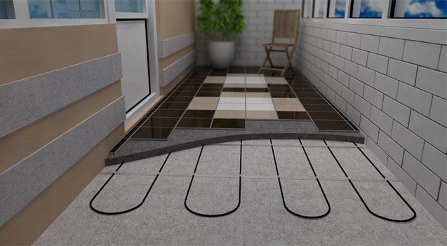 - If you choose a tile as a cover, then the mats can be built into a special composition. Moreover, it is not necessary to furnish the floor of the balcony for laying the heating grid, and the construction is ready for use in a week.