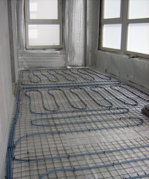 Heating of the flooring is due to the radiator embedded in the concrete screed.