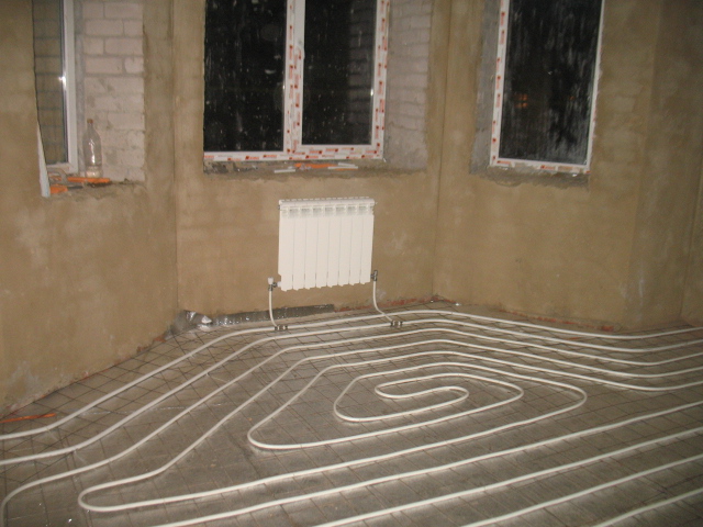 - In the presence of irregularities it is worth pouring a cement screed. Next, we make the layout of the location of future radiators. Now we are going to build the system.
