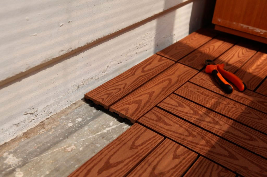An excellent option would be to put PVC tiles. The tile consists of modules measuring 30 by 30 cm, which is easy to assemble without the use of adhesive substrates and fasteners.It can be cleaned with a conventional vacuum cleaner and easily washed with water. The material is produced, including the colors of marble, granite, wood, etc.