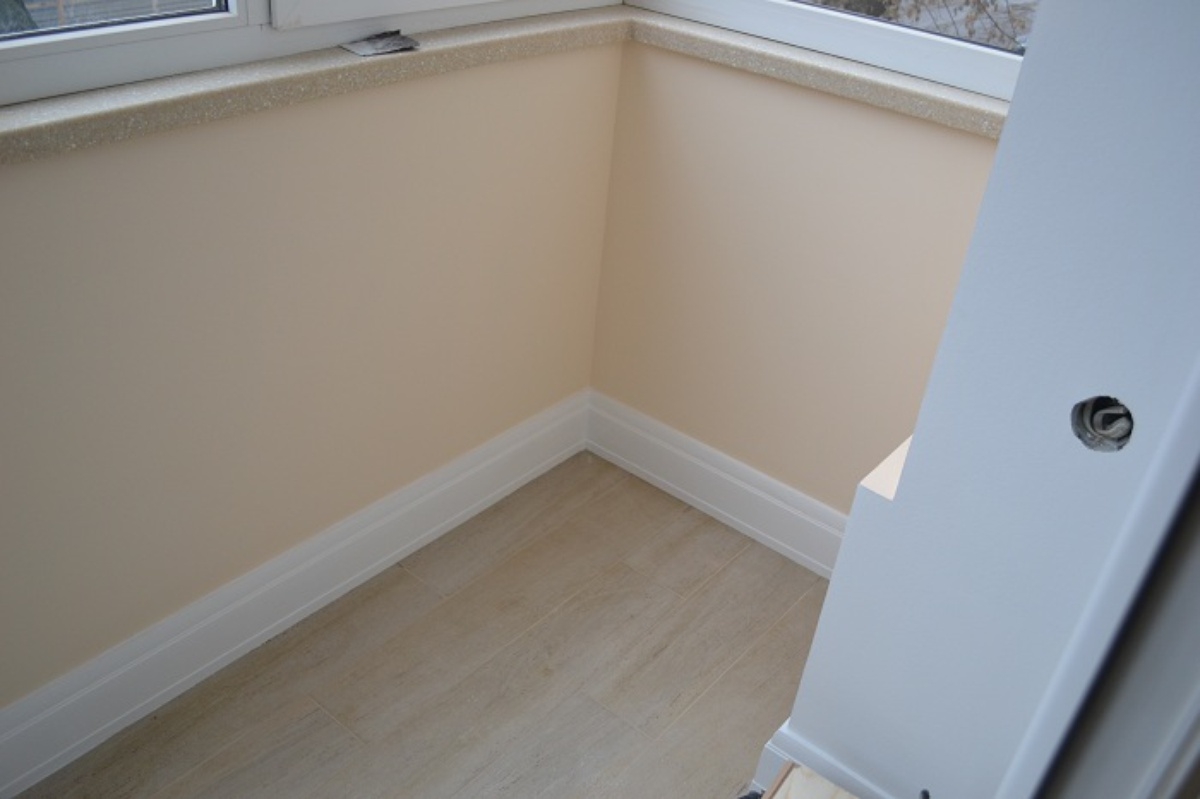 - We make a screed to level the floor level of the balcony and room. This moment is very important when combining the premises. The screed will dry for about a week.
