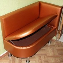 - Leather. This option is used for banquettes of different styles and types. There may be a different finish. In any case, the furniture will look dignified, elegant and attractive. In this case, of course, this option will cost more. But the material will serve you a long service.