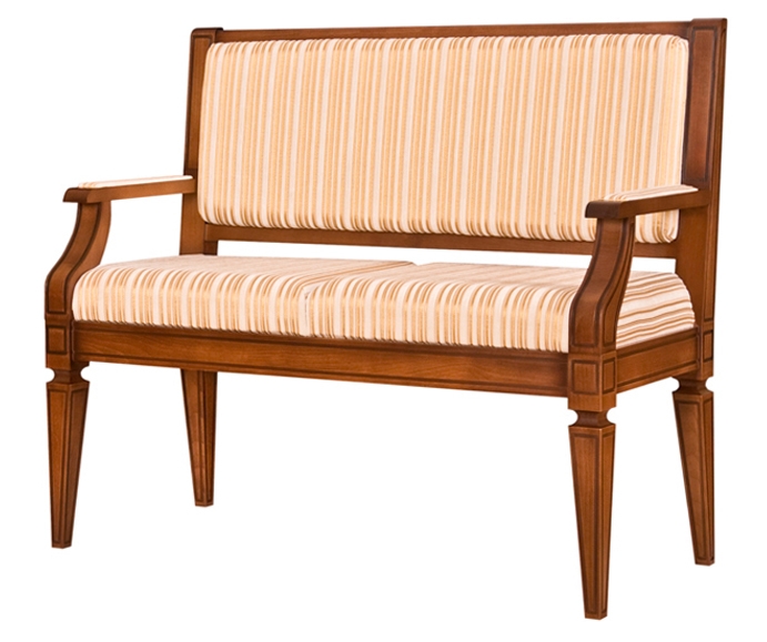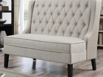 - Banquette with armrests and backrest. Basically, these options - double or triple upholstered bench. They are quite comfortable. In this case, the armrests can be made of wood or metal,upholstery can also be used.
