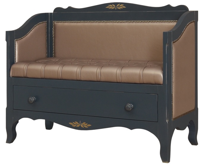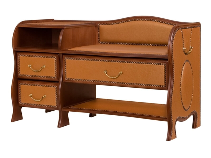 - With backrest and drawers. This option is quite interesting. It fits perfectly into the interior in both rustic and classic style. At the same time, unlike the previous version, the box that will be pulled out requires free space when opening. So this model is not suitable for very narrow hallways.