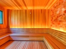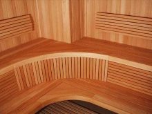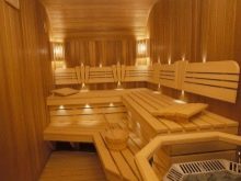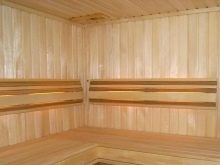 Lime lining is considered the most suitable for facing the walls of the steam room. The structure of the material is porous, low density, the tree does not heat up from high temperatures. Lipa has healing properties, highlighting the air particles when heated. They are useful for the prevention of many diseases.